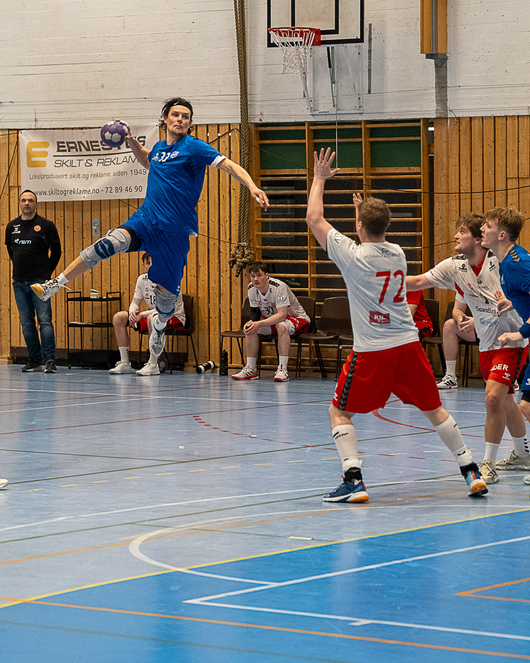 Første omgang startet med mål fra Erlend Schjølberg Ressem (#27). Tiller og Bergsøy var jevngode og fulgte hverandre tett gjennom omgangen. Tiller lå under med 3 mål da gjenstod 3 minutter av første omgang. Spillerne skjerpet seg og var bare 1 mål etter til pause, i det som var en sterk omgang mot serielederen.